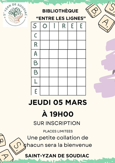 Soirée scrabble à la Bibliothèque de St Yzan de Soudiac.